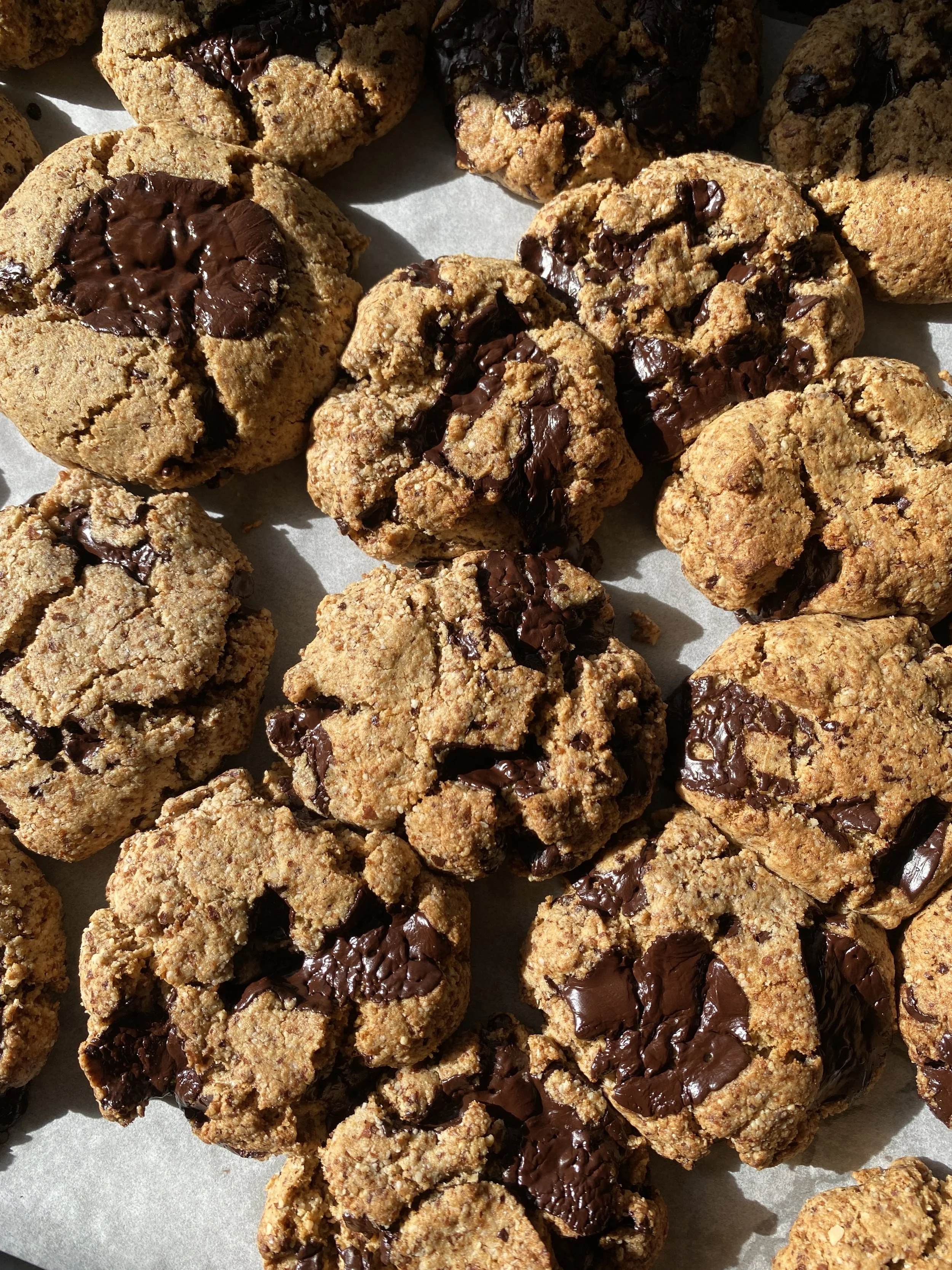 For the choc chips I used a 85% dark chocolate block and smashed it into little pieces otherwise you can purchase vegan choc chips from your local health food store.